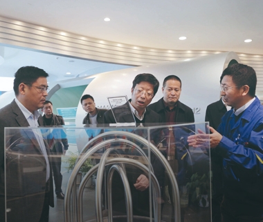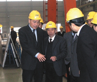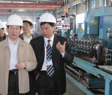 2007年2月,時(shí)任浙江省原副省長(zhǎng)金德水(左二)視察久立生產(chǎn)現(xiàn)場(chǎng)