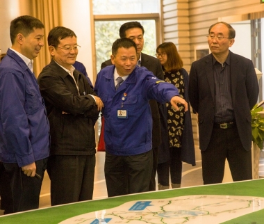 2011年,時(shí)任浙江省省長(zhǎng)呂祖善(左一)與周志江董事長(zhǎng)等人大代表一起視察